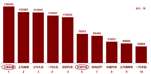 从广义乘用车批发销量看,前三名分别是上汽通用五菱、上汽通用和上汽大众。