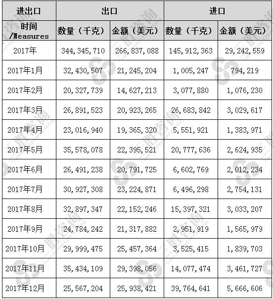 三胜产业研究中心:2017年天然石墨进出口数据统计表
