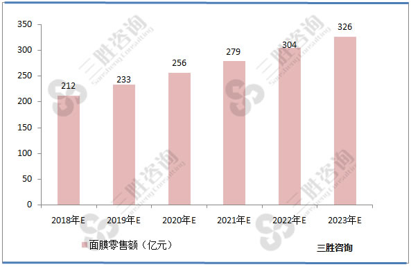 首先,面膜市场规模将持续扩大。未来几年,我国面膜市场将呈快维持速增长态势。2018年面膜市场将达212亿元,到2023年,中国面膜零售市场规模将预计达到326亿元。