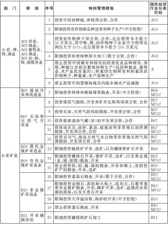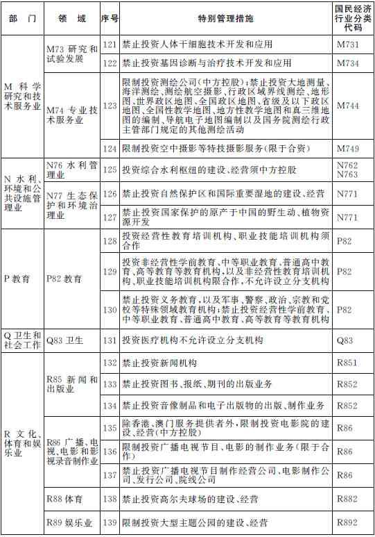 除列明的外商投资准入特别管理措施,禁止(限制)外商投资国家以及中国缔结或者参加的国际条约规定禁止(限制)的产业,禁止外商投资危害国家安全和社会安全的项目,禁止从事损害社会公共利益的经营活动。