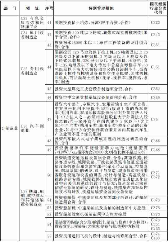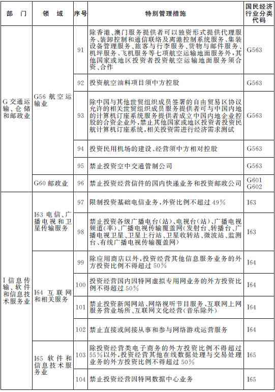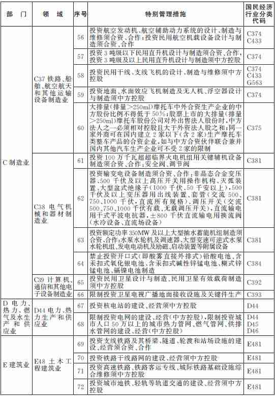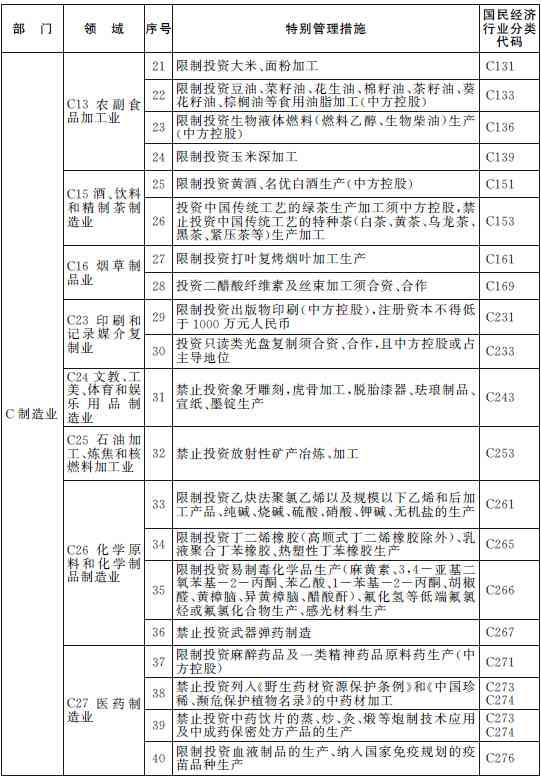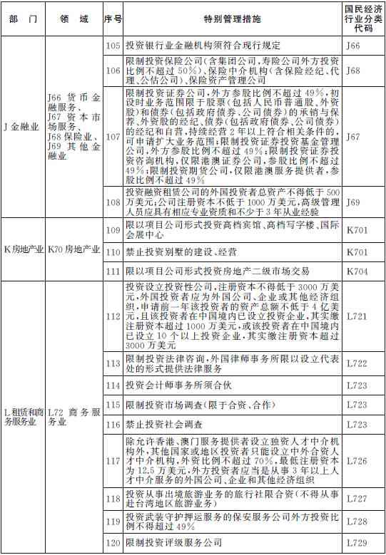 中国(上海)自由贸易试验区外商投资准入特别管理措施(负面清单)