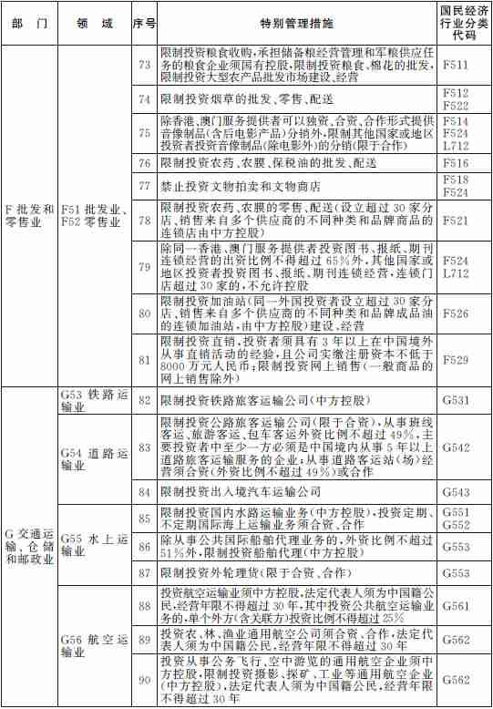 《中国(上海)自由贸易试验区外商投资准入特别管理措施(负面清单)(2014年修订)》(以下简称“负面清单”),以有关法律法规、国务院批准的《中国(上海)自由贸易试验区总体方案》、《中国(上海)自由贸易试验区进一步扩大开放的措施》、《外商投资产业指导目录(2011年修订)》等为依据,列明中国(上海)自由贸易试验区(以下简称“自贸试验区”)内对外商投资项目和设立外商投资企业采取的与国民待遇等不符的准入措施。负面清单按照《国民经济行业分类及代码》(2011年版)分类编制,包括18个行业门类。S公共管理、社会保障和社会组织、T国际组织2个行业门类不适用负面清单。