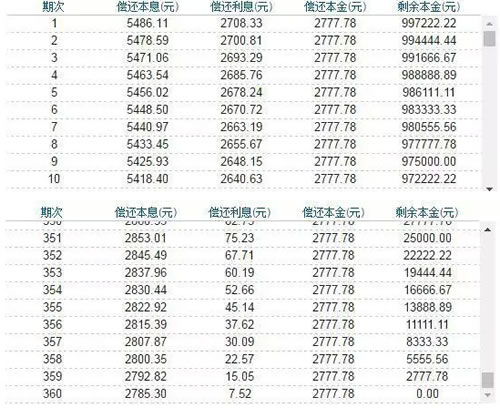 先来看看每个月要还的本金,如果还款方式选择等额本金,就是将本金100万平均分到360个月(30*12),这样算下来每个月固定还本金2777.78元,这是一个固定的数字,所以我们也不用管,我们只需要看看每个月要还的利息就可以了。