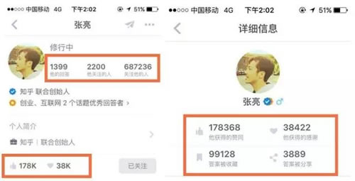 说到融入到产品设计中的用户激励体系,就不得不提下知乎。知乎产品本身的赞同、感谢机制就是一种激励体系,并且在个人详情页中详细展现出来。而这种个人成就的展示恰好可以满足用户的荣誉感,以鼓励其贡献更多优质的内容。