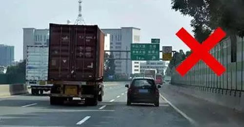 不要长时间在大货车右边行驶,大货车的体形比家用车要大得多,和它们并排行驶不仅很有压迫感,而且还不安全,货车因盲区大的缘故容易忽视旁边的小车,造成安全隐患。