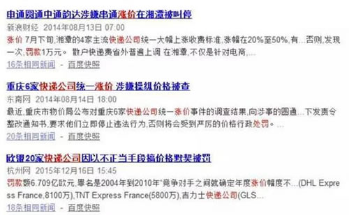虽然涨价事发已经是一年之前,消息一出,依然引发行业热议。这不是快递公司第一次因为协同涨价被罚。2014年,湘潭、重庆几家快递公司就同样因为统一涨价被查。甚至在国际上,也存在这种情况。
