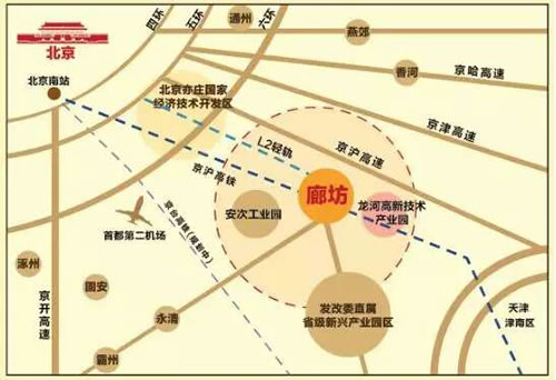 首先,从交通方面来看,廊坊占据优越的“地利”,恰好位于京津之间,离北京驾车距离仅60公里不到,距离天津驾车约85公里,距离首都和天津机场约70公里。高铁方面,京唐城际、京滨城际已在2015年内开工,廊涿城际以及联络线也有望2016年开工。其实目前开通的高铁已十分便利,2011年6月30日通车的京沪高铁贯穿廊坊,每天约43个车次,到达北京仅需20分钟,南往天津也仅需20分钟,实现了京津一小时生活圈。廊坊还立项对接北京的轻轨延长线,起点为亦庄轻轨站,未来可直达廊坊城区。在北京上班,生活在廊坊,依赖高铁通勤,实际上已经成为许多北漂的日常之一,地铁的开通无疑会进一步降低通行成本。